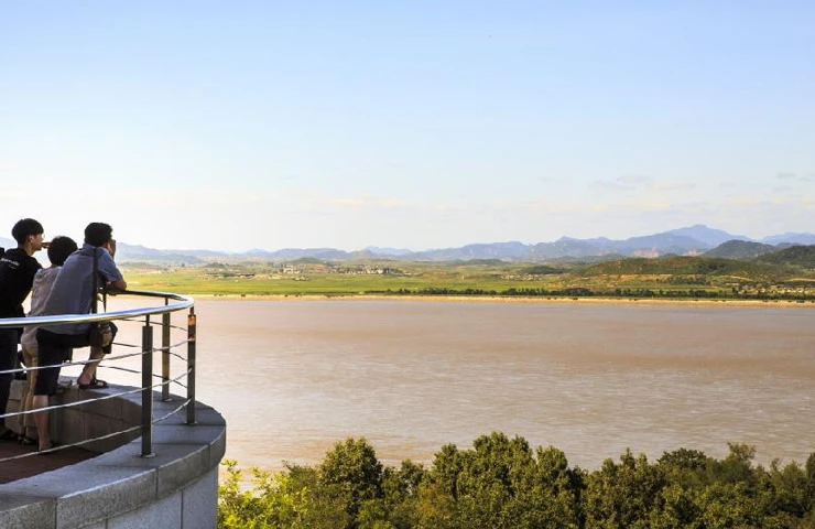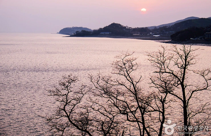 강화평화전망대는 강화도 최북단인 양사면 철산리 민통선 지역에 세워졌다. 한강과 임진강, 예성강 물줄기가 서해와 만나는 강 같은 바다를 사이에 두고 북한과 마주한다. 물길의 너비는 불과 2~3km 안팎이다. 헤엄쳐 건널 수 있을 만큼 가깝지만, 이곳 수역은 아무도 다가갈 수 없는 육지의 비무장지대(DMZ)와 같다. 이런 까닭인지 주변을 아무리 둘러봐도 어선 한 척 눈에 띄지 않는다. 맑은 날엔 북한 송악산과 개풍군 들판, 집이 옹기종기 모인 마을이 망원경 없이도 선명히 보인다. 출처 : 대한민국구석구석(korean.visitkorea.or.kr) → 펜션에서 약 30.37km 자동차로 약 52분